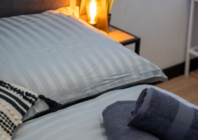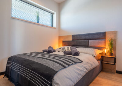 W jednej z nich znajduje się łoże małżeńskie, przestronna duża wnękowa szafa z lustrem, dwa stoliki nocne z lampkami oraz komoda. Wielkość pomieszczenia pozwala na dostawienie łóżeczka dziecięcego. Druga z nich posiada kanapę rozkładaną 2 osobową.