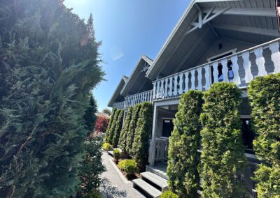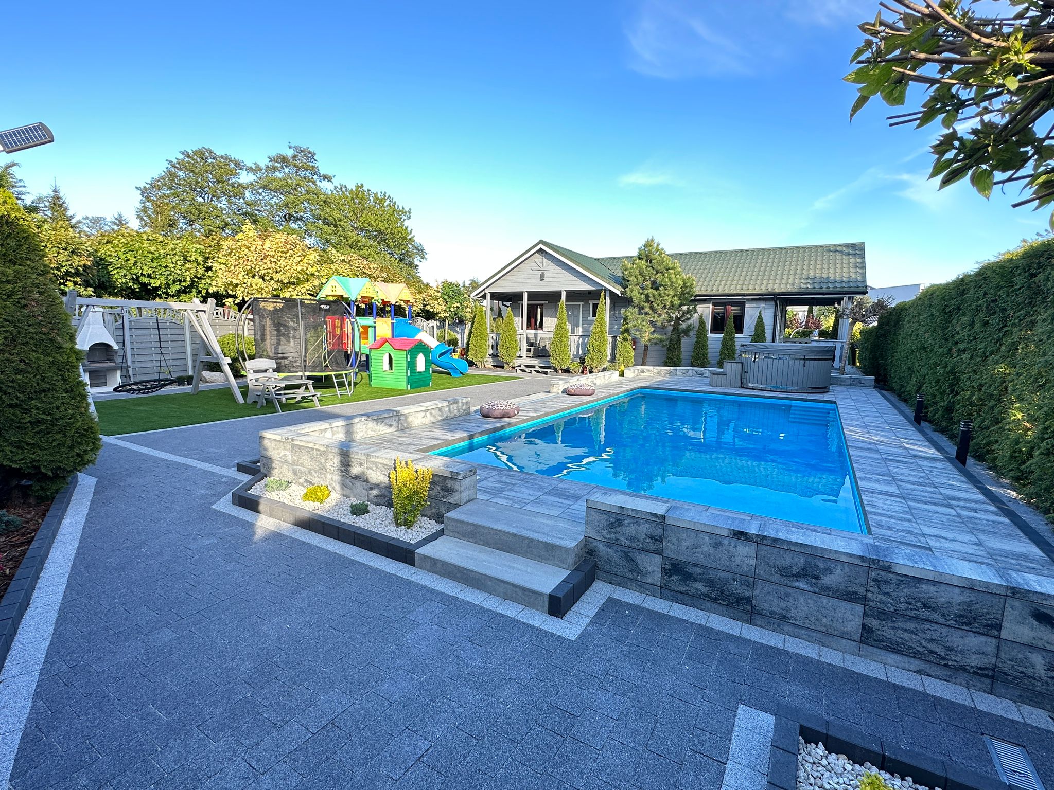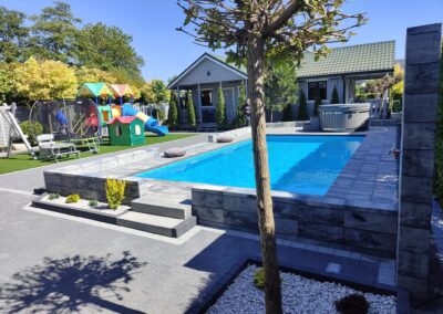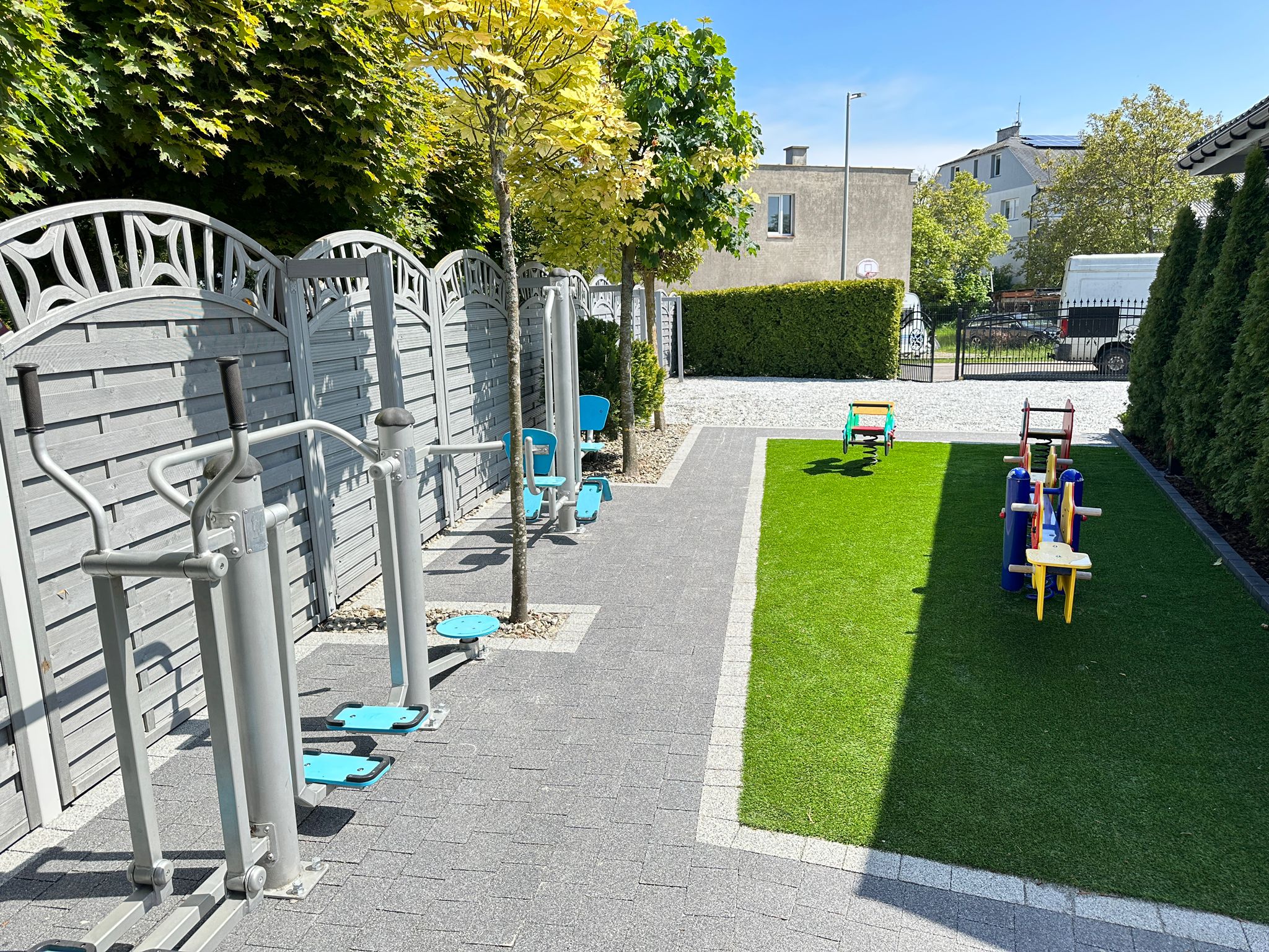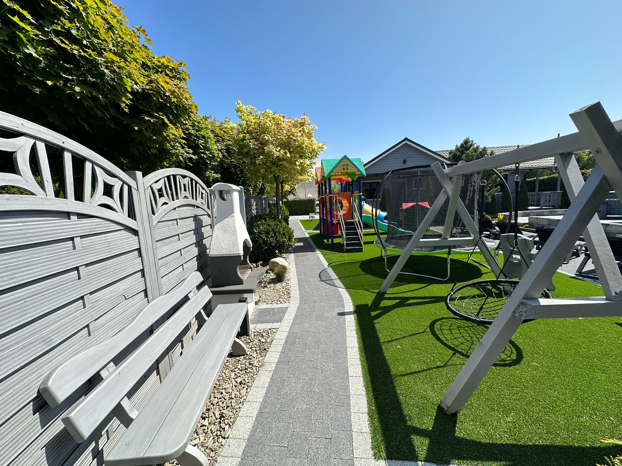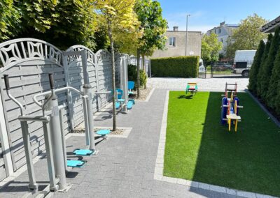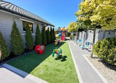 Dla naszych gości przygotowaliśmy również duży, zielony ogród z miejscem do wypoczynku, plac zabaw dla dzieci oraz monitorowany parking.